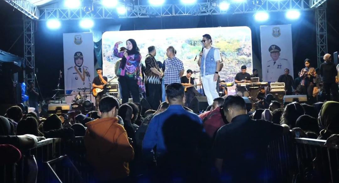 Walikota Bandar Lampung Eva Dwiana membuka Konser Pemuda Pesta Rakyat, dan Kewirausahaan yang berlangsung di Lapangan Kelapa Taru, Kemiling, Minggu malam, (15/6 ). Aksi panggung Andika Mahesa Kangen Band dan Kipas Tua Band mampu menghipnotis ribuan penonton yang hadir dalam pagelaran musik memperingati Hut Bandarlampung ke 343 tersebut.