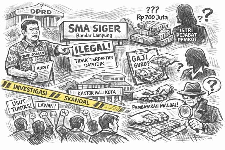 Namun, pengakuan tersebut tidak sepenuhnya sejalan dengan keterangan para tenaga pendidik di lapangan. Sejumlah guru mengaku hanya menerima honor berkisar Rp200 ribu hingga Rp300 ribu per bulan dengan sistem pembayaran tunai.“Dilihat dari jam mengajar. Kami tanda tangan, lalu langsung dikasih uang,” ungkap salah satu guru.Praktik pembayaran manual tersebut dinilai semakin memperkuat dugaan adanya persoalan dalam sistem pertanggungjawaban keuangan. Sementara itu, Kepala Dinas Pendidikan Provinsi Lampung, Thomas Amirico, menegaskan bahwa hingga kini izin operasional SMA Siger belum menunjukkan perkembangan signifikan sejak diajukan pada Agustus tahun lalu. “Mereka belum terdaftar di Dapodik,” tegasnya.Menanggapi rangkaian temuan tersebut, Ombudsman RI Perwakilan Lampung menyatakan akan segera berkoordinasi dengan instansi terkait.