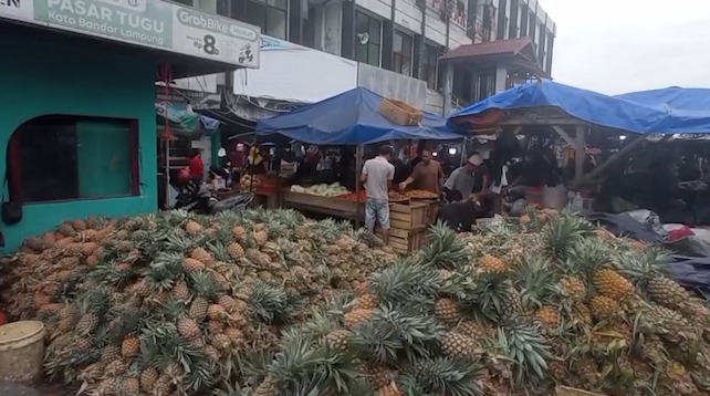 Wartasaburai, Bandarlampung – Menjelang Hari Raya Idul Fitri, aktivitas perdagangan di sejumlah pasar tradisional di Kota Bandar Lampung mulai meningkat. Salah satu komoditas yang banyak diburu masyarakat adalah buah nanas yang biasa digunakan sebagai bahan pembuatan selai untuk kue kering Lebaran.