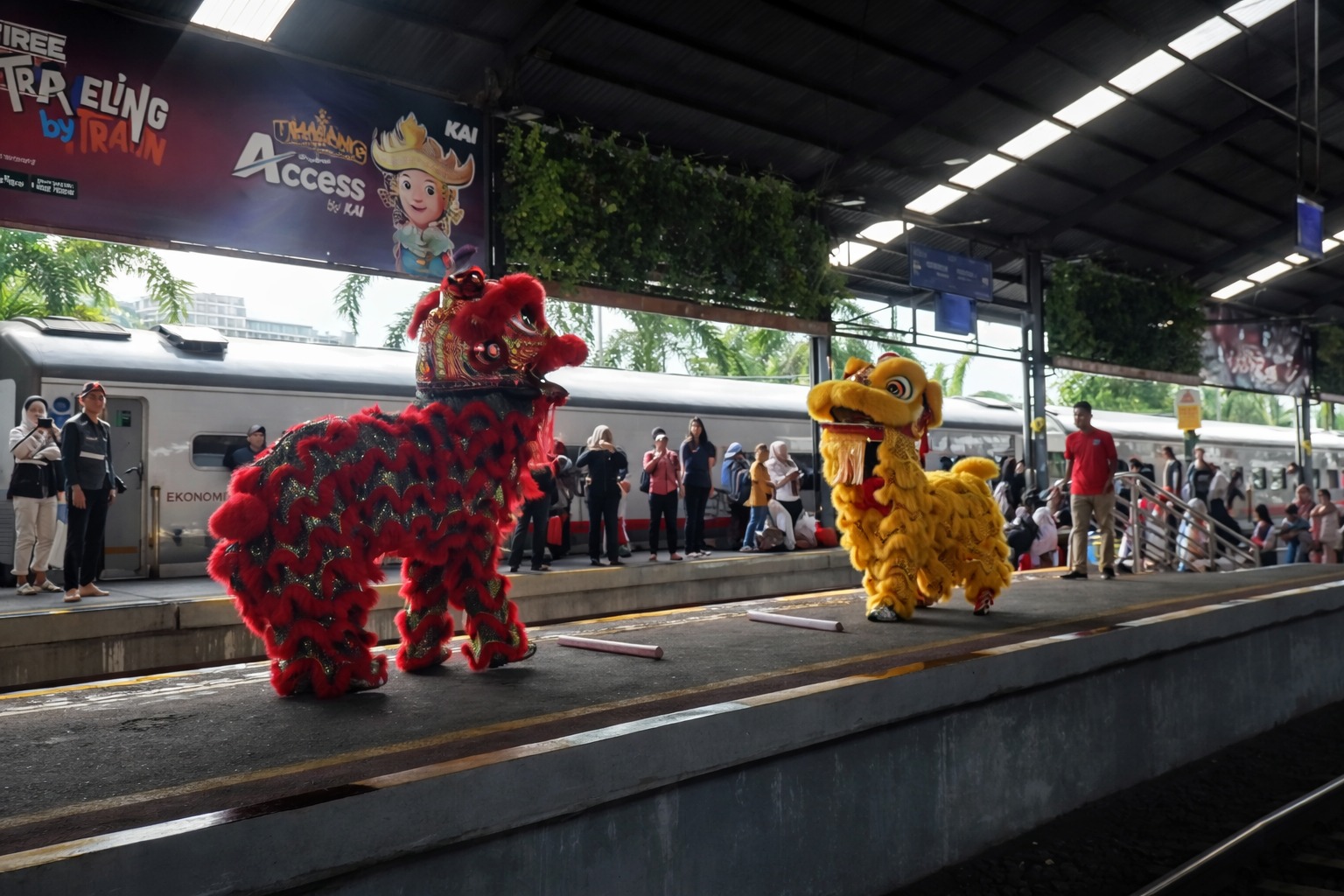 Barongsai Semarakkan Perayaan Imlek di Stasiun Tanjung Karang, Penumpang Terhibur
